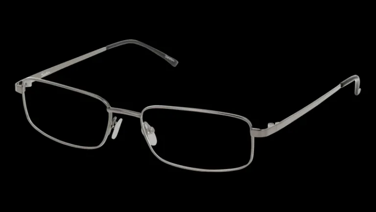 Rektangulära bågar i grått. Hållbara och bekväma metallbågar.