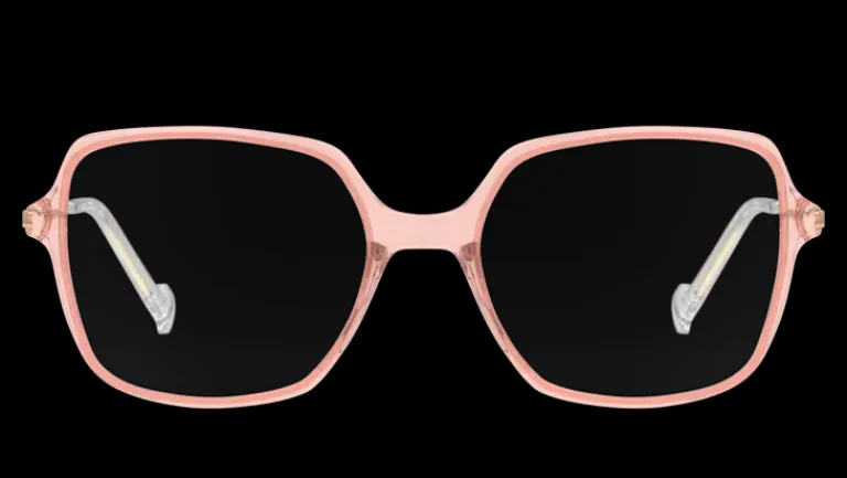 Rektangulära bågar i rosa. Lätta och bekväma acetatbågar.