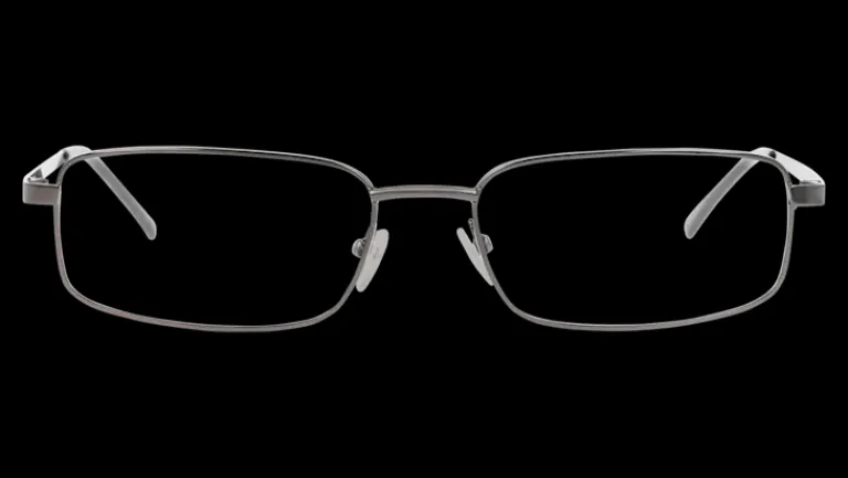 Rektangulära bågar i grått. Hållbara och bekväma metallbågar.