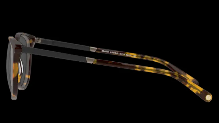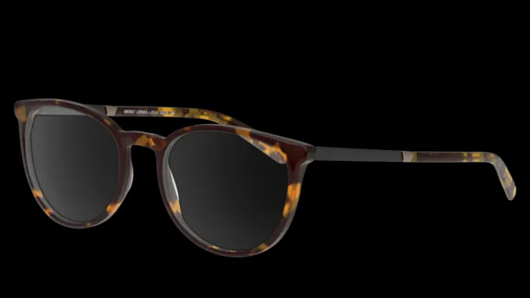 Uppåtsvängda bågar i brunt. Lätta och bekväma acetatbågar.