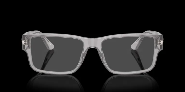 Rektangulära bågar i grått och transparent. Lätta och bekväma bågar i acetat
