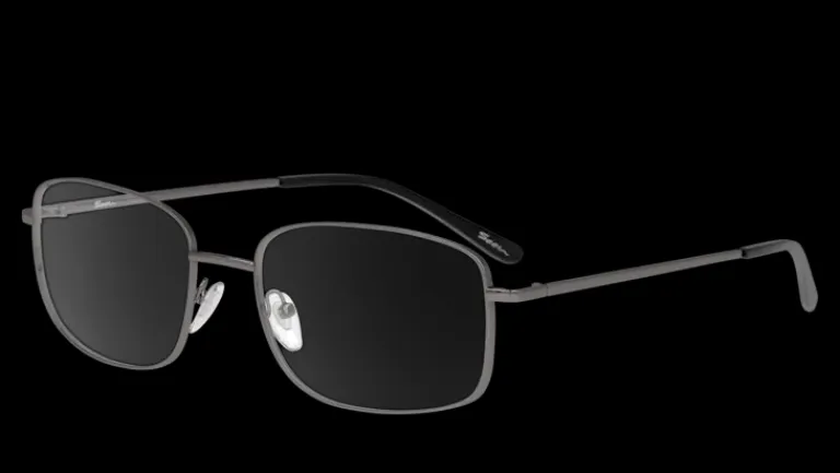 Rektangulära bågar i grått. Hållbara och bekväma metallbågar.